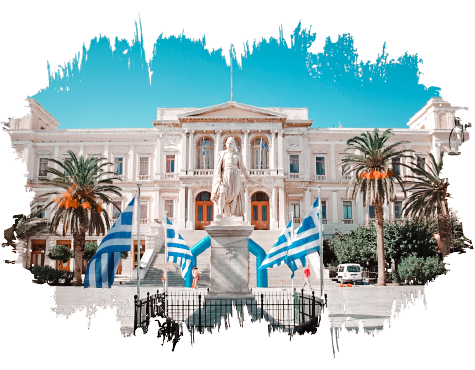 Thalassa Room is a newly renovated room with a spectacular panoramic view over the city of Hermoupolis and the Cycladic islands of Tinos and Mykonos.